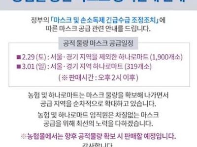 관련글 : 마스크 판매하는 농협 하나로마트 명단 주소